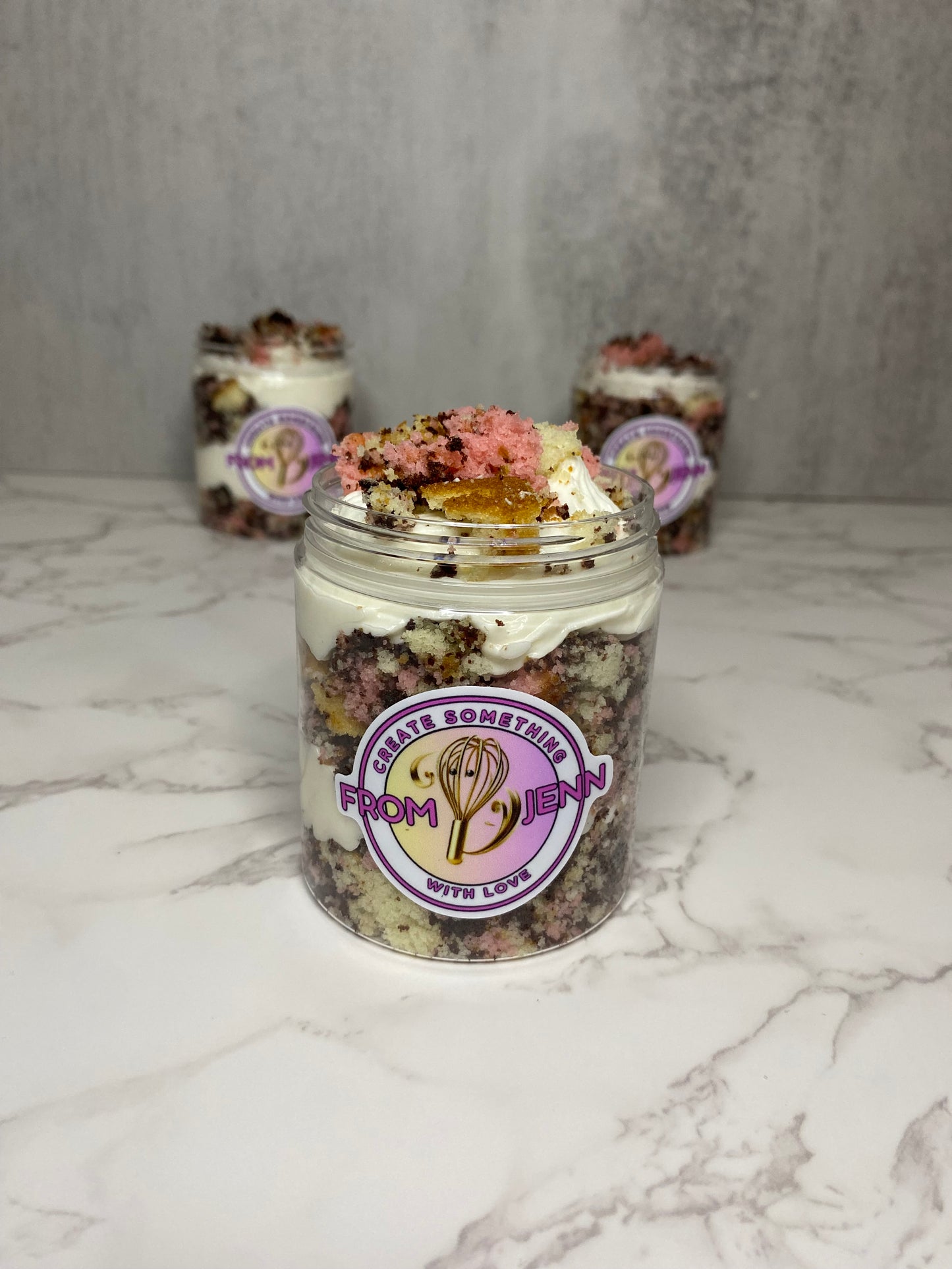 Indulge in the ultimate dessert experience with our Delicious Cake Jars from From Jenn, With Love Bake Shop. Perfectly portioned and layered with love, these cake jars are a convenient and delightful way to enjoy your favorite flavors on the go or as a sweet treat at any time.